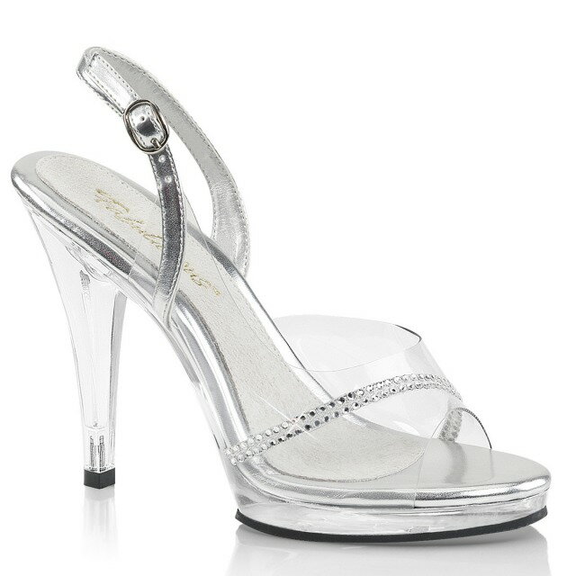 PLEASER【取り寄せ】プリーザー・スリングバックラインストーンデザイン厚底サンダル/品番:FLAIR-456/FLA456/11cmヒール/歩きやすい/コスプレ/女装/男性用/靴/大きいサイズ/ダンサー/ポールダンス/ピンヒール/衣装/ドレス/クリアサンダル/クリア×シルバー/透明×銀