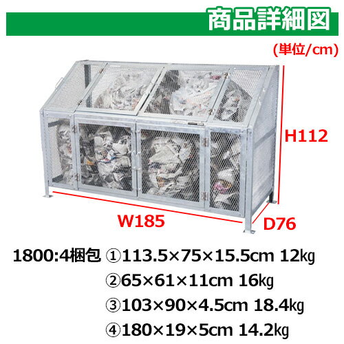 ゴミ収集庫メッシュゴミ収集庫 1800 KDB-1800N 作業がより快適になる屋外の空間作りをお手伝いいたします! 販売条件 ◆詳しくはこちらをご確認ください サイズ W1850×D760×H1120mm(脚・取っ手含む) 重量:60.6kg 耐荷重:255kg 仕様 ゴミ収集庫/組立式 材質 スチール(溶融亜鉛メッキ)/蝶番:ステンレス(SUS430)ビス:鉄にダクロメッキ セット内容 ■メッシュゴミ収集庫 1800 KDB-1800N 備考・注意 ※配送には実働約2日〜3日程度お時間がかかる場合があります。