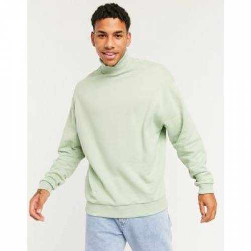 エイソス ASOS DESIGN スウェットシャツ トレーナー 緑 グリーン 【 GREEN ASOS DESIGN OVERSIZED SWEATSHIRT WITH ROLL NECK IN FROSTY 】 メンズファッション トップス スウェット トレーナー
