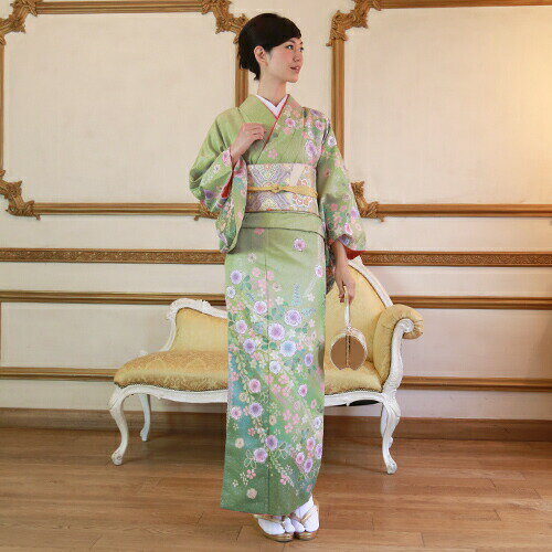 【最大1000円OFFクーポン】【レンタル】 訪問着 レンタル 19点フルコーディネートレンタルセット「黄緑色地にカラフルな花々」結婚式 入学式 七五三 ママ グリーン 20代 30代 40代 50代 60代